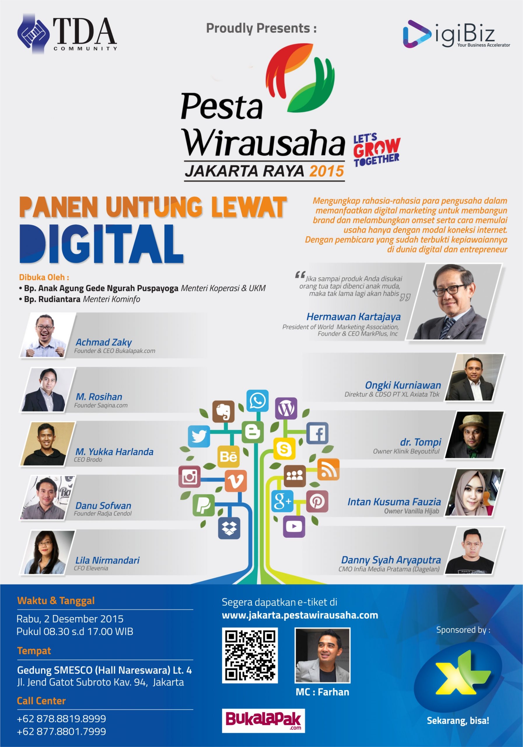 Hai para pengusaha dan calon pengusaha di Jakarta dan sekitarnya. Pastikan diri kamu ikut serta dalam acara yang sayang kalau dilewatkan dengan pembicara-pembicara yang spektakuler, PESTA WIRAUSAHA JAKARTA RAYA 2015. Pestanya para wirausahawan, yang diselenggarakan oleh komunitas Tangan Di Atas (TDA) bekerja sama dengan PT. XL Axiata ini mengusung tema…