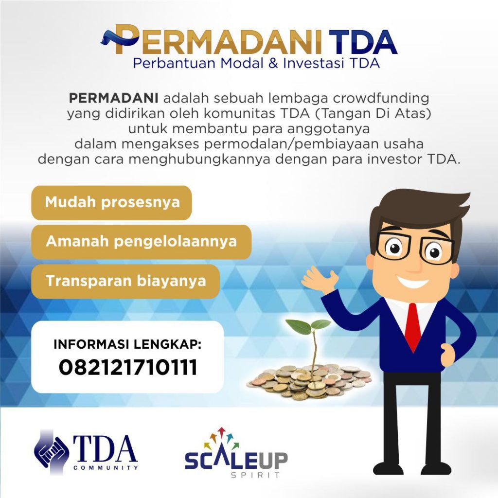 Permadani siap membantu anggota TDA untuk dapat mengakses permodalan dengan mudah, amanah dan transparan. Mudah dalam prosesnya, Amanah dalam pengelolaannya dan Transparan dalam laporan dan biaya.