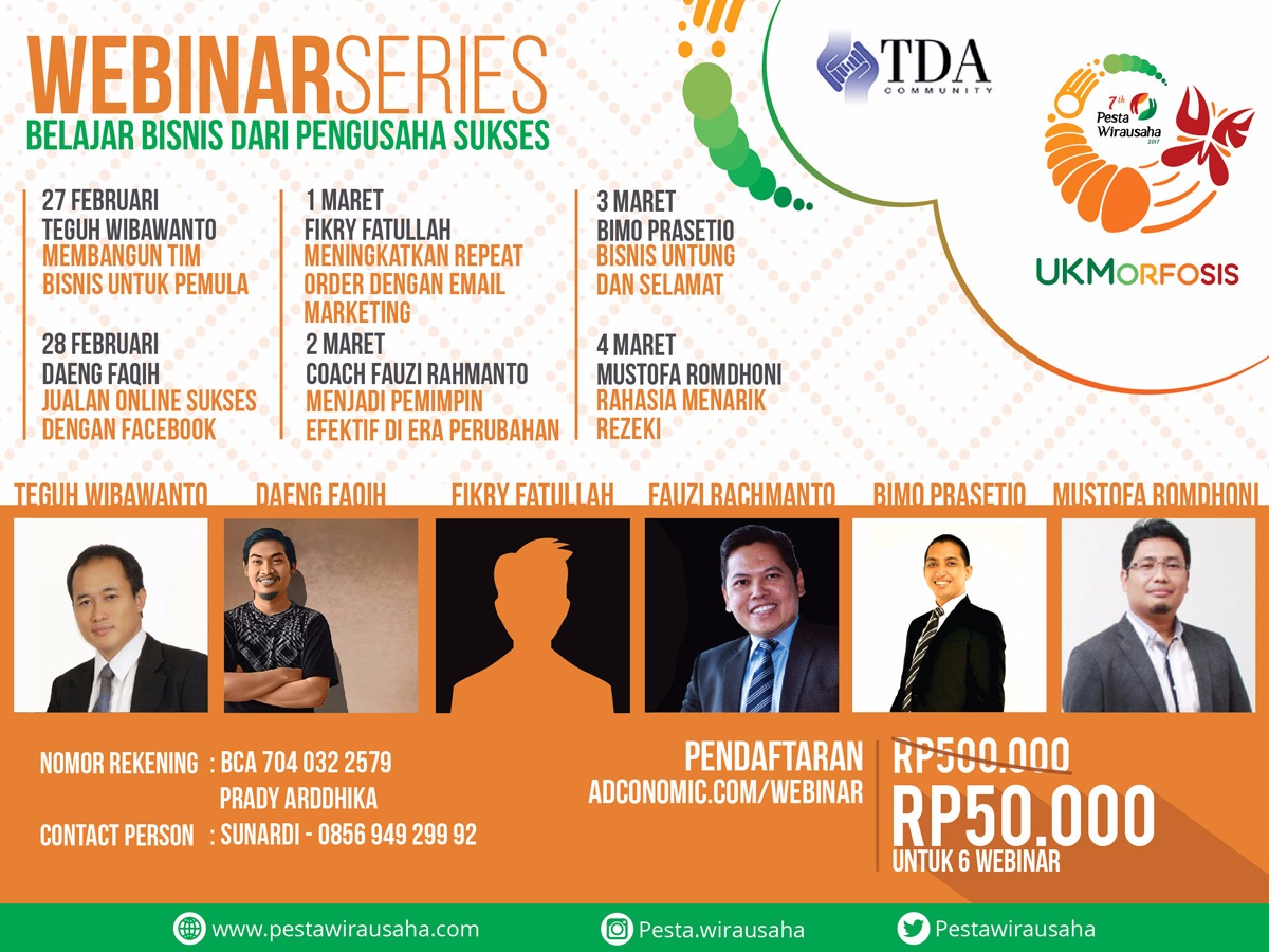 Ilmu Wajib Untuk Pengusaha ataupun calon pengusaha27 Februari – 4 Maret 2017Harga Jadi Rp 50.000 (akses ke 6 webinar)Daftar disini segera sebelum harga naik!